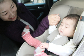 まわりの人から、チャイルドシートの取り付けはけっこう複雑だと聞いていたんですが、takata04-smartfixは簡単で、私一人でもストレスなく取り付けられています。くるくる回すだけでベルト固定ができる「プリローダー® システム(ママ楽ハンドル®)」や、側面衝突の衝撃から子どもを守ってくれる「サイドプロテクションシステム」など、機能も十分。よくできているなと思いますね。なかでも気に入っているのが、マグネット付タングと自立バックルです。子どもを乗せるとき、片手でグズる子どもの体を支え、片手でバックル操作ができるので、この2つはずいぶん重宝しますよ。 購入前は、構造がしっかりしているせいか、本体の重量は10sとかなり重いのが気がかりでしたが、クッションにふんわりと包まれて抱っこされているような感覚が気持ちいいのか、takata04-smartfixに乗ると、すぐに眠ってしまうので、このチャイルドシートにしてよかったと思います。