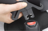 | タングをバックルに差し込むときも片手でOK。解除も指1本で簡単に行えます。 | ![]() |