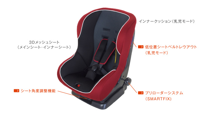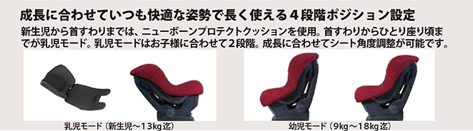| 乳児モードでのシートベルト取付位置を、安全性能はそのままに、低位置に設定。ドア側からのお子様の乗せ降ろしが、従来より楽々スムーズになりました。 |