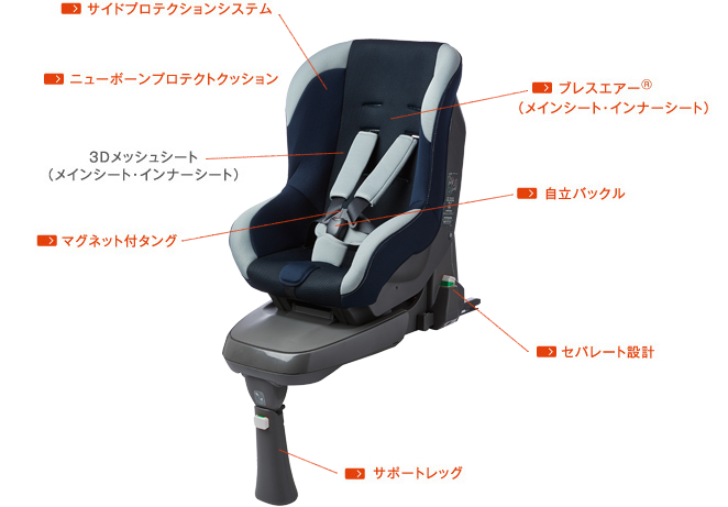 ベースから本体だけを取りはずすことができるため、付け替えや持ち運びも楽々。お子さまの成長に応じたモードの切り替えがとっても簡単。新生児〜 13 sまでは本体を後ろ向きに設置した「乳児モード」、9 s〜 18 sは前向きの「幼児モード」と、新生児〜 4 歳ごろまで継続してご使用いただけます。