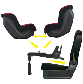 複数のクルマで使用される方やカーシェアやレンタカーでの利用に特にオススメ。また、多くのカーメーカーが純正品として採用されているチャイルドシートと同タイプだから、安全性はもちろんクルマへのフィット性も抜群です。