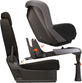 EC基準を満たした日本初のISOFIX対応チャイルドシート、takata04-i fix。ベースを後部座席などに固定したまま、本体だけを取りはずすことができるため、お子さまの成長に応じたモードの切り替えがとっても簡単。新生児〜13sまでは本体を後ろ向きに設置した「乳児モード」、9s〜18sは前向きの「幼児モード」と、新生児〜4歳ごろまで継続してご使用いただけます。