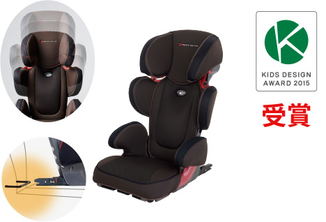 子どもの成長に合わせて適切な位置でシートベルトを着用できる座席固定型のジュニアシート。事故の衝撃が直接伝わりやすい側面衝突を考慮した構造により、子どもが寝てしまっても安全な着座姿勢を保持することにも役立ち、安全性と快適性の両立を満たした。(2015年度受賞)