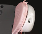 | エアバッグに採用されている強くやわらかい織布で空気を含んだウレタンを包みこみ外周を縫製。側面衝突時には縫い目からパッド内の空気を逃がし衝撃を効果的に吸収し、子どもの頭部をしっかり保護します。また、通常時はソフトなエアクッションとして機能し、快適に乗車できます。 | ![]() |