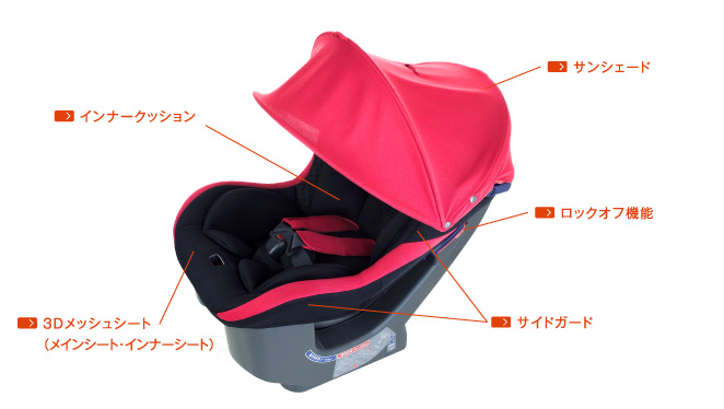 | 新生児の赤ちゃんも負担の少ない包み込むようなフォルムでゆったり眠れるインナークッション採用。ムレやすい背面には3Dメッシュシートを採用し、いつもサラッと快適です。 |